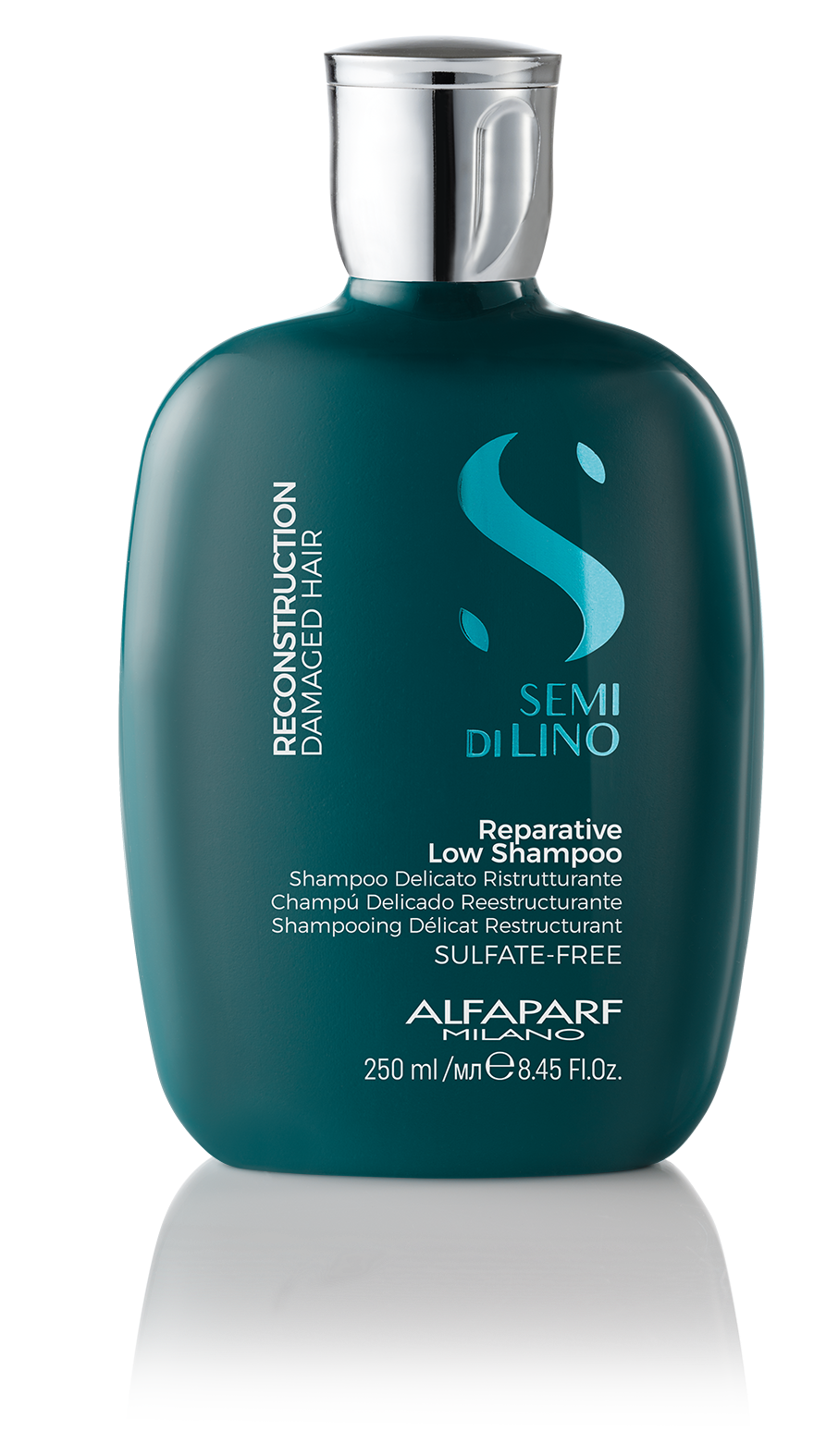 Semi Di Lino Reconstruction Reparative Shampoo. Acción reestructurante hasta el corazón de la fibra, manteniendo el cabello suave y elástico.